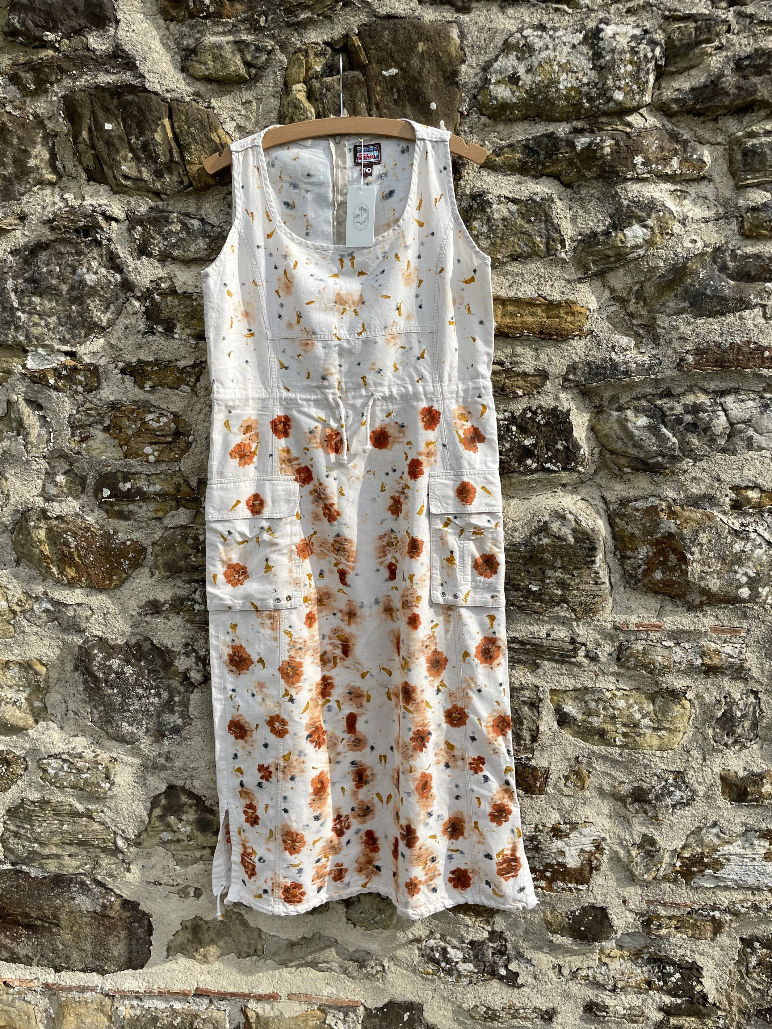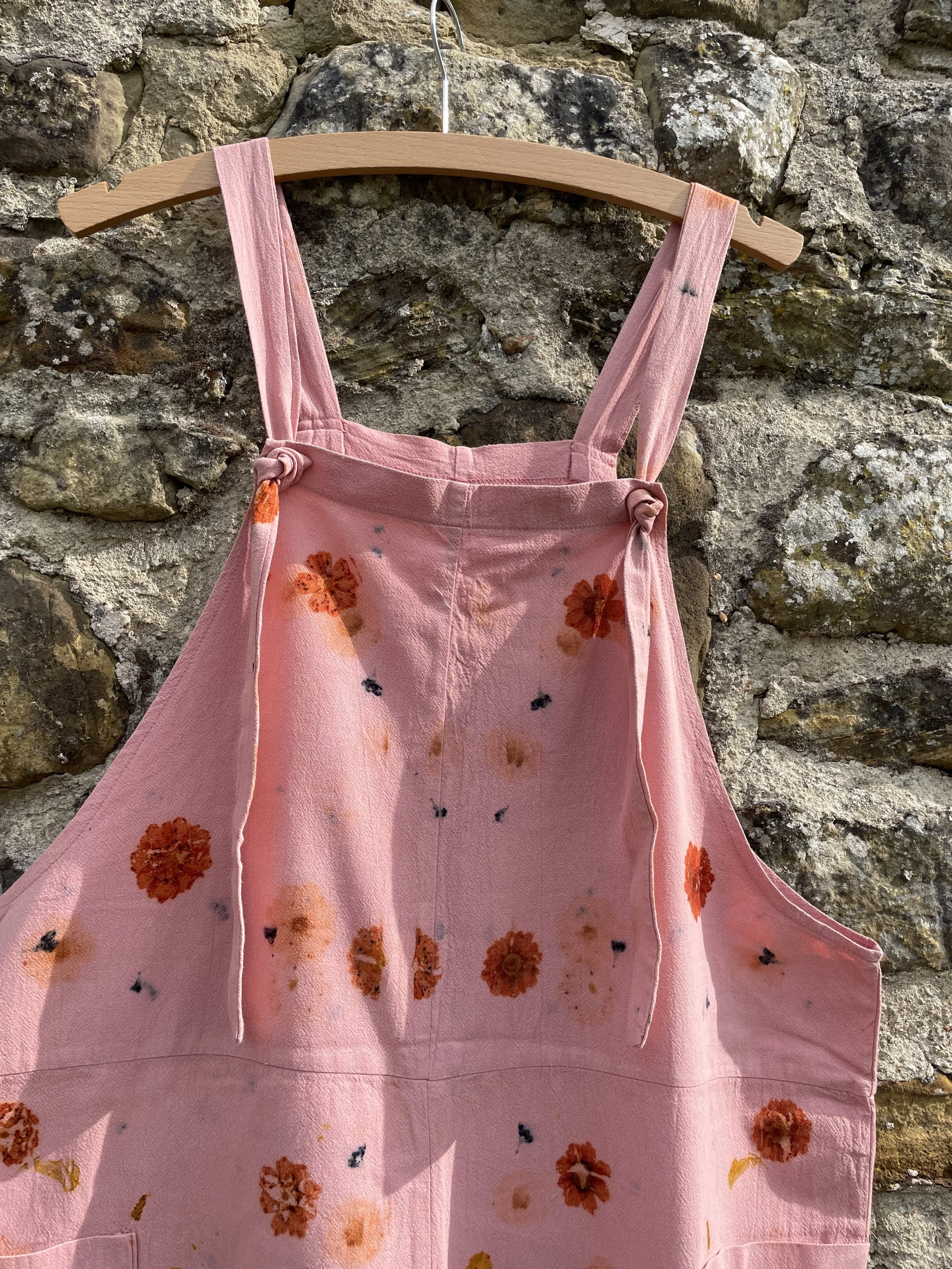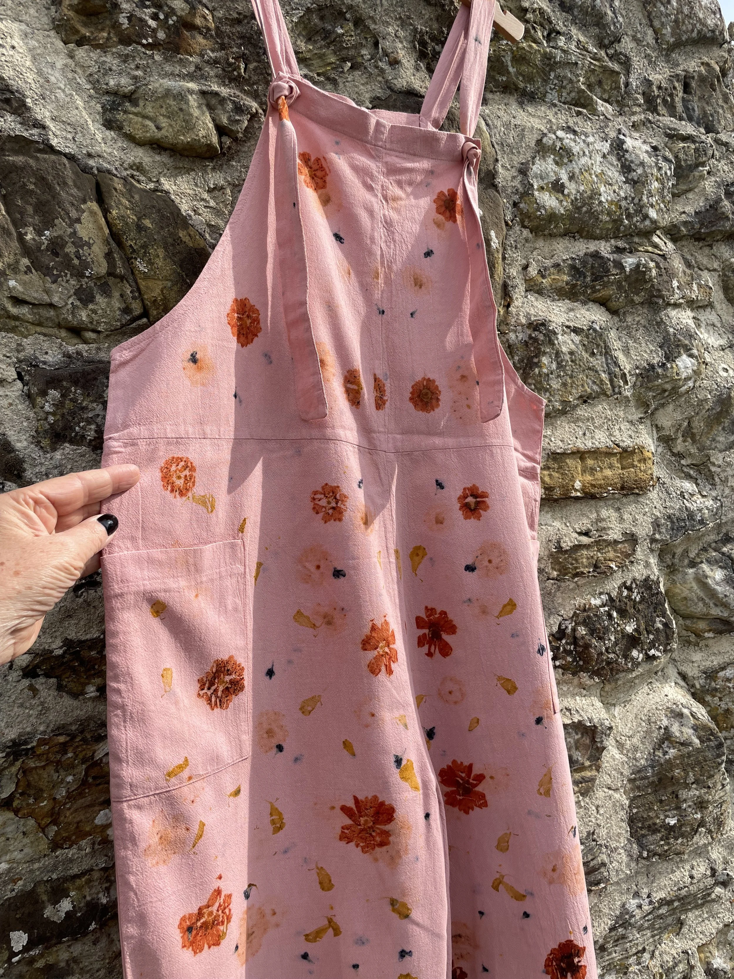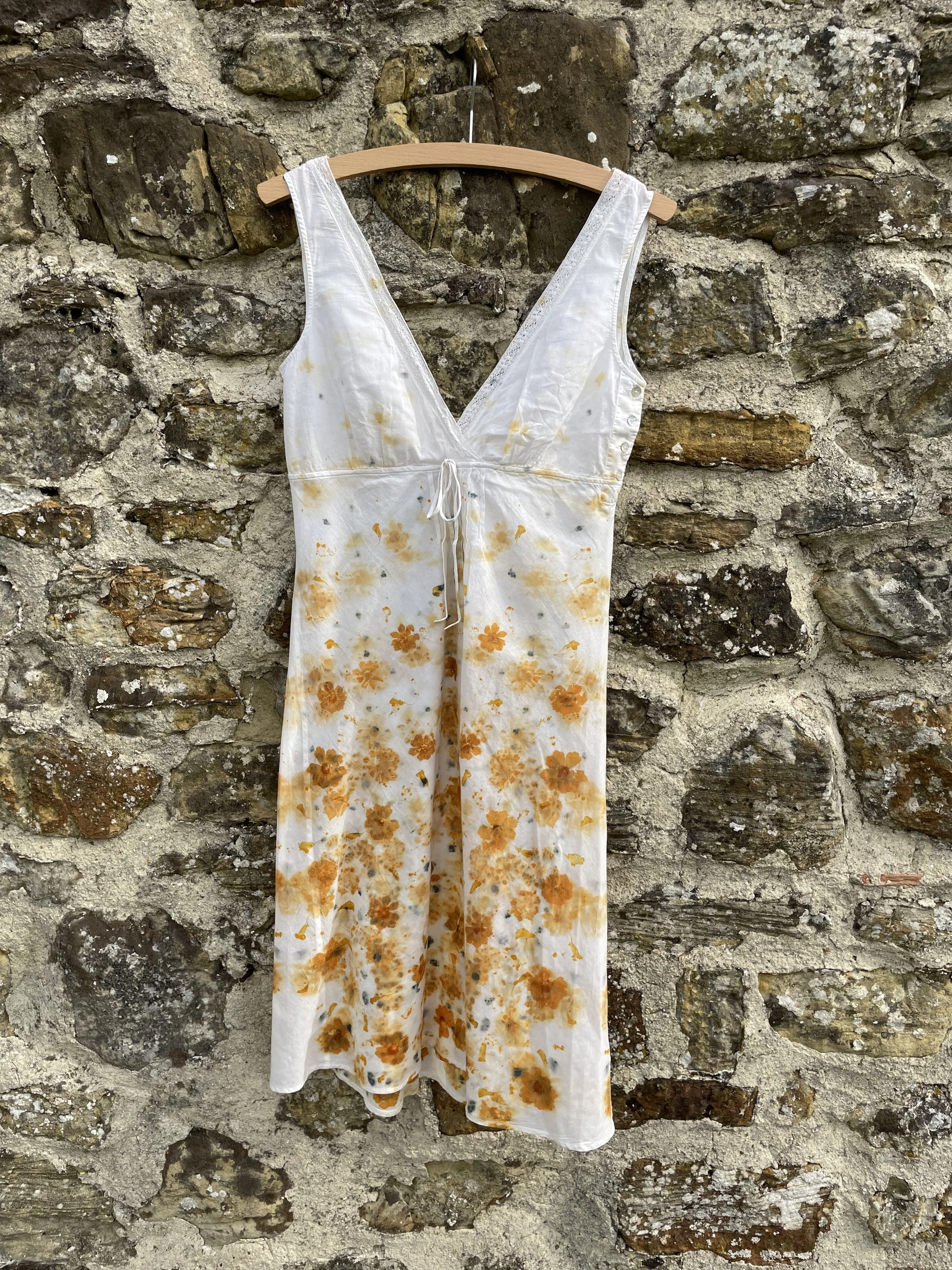 This 100% cotton T shirt has been given a new lease of life with flowers! It has been eco printed with just simple Coreopsis flowers, from my dye garden here in Fairlight by the sea.