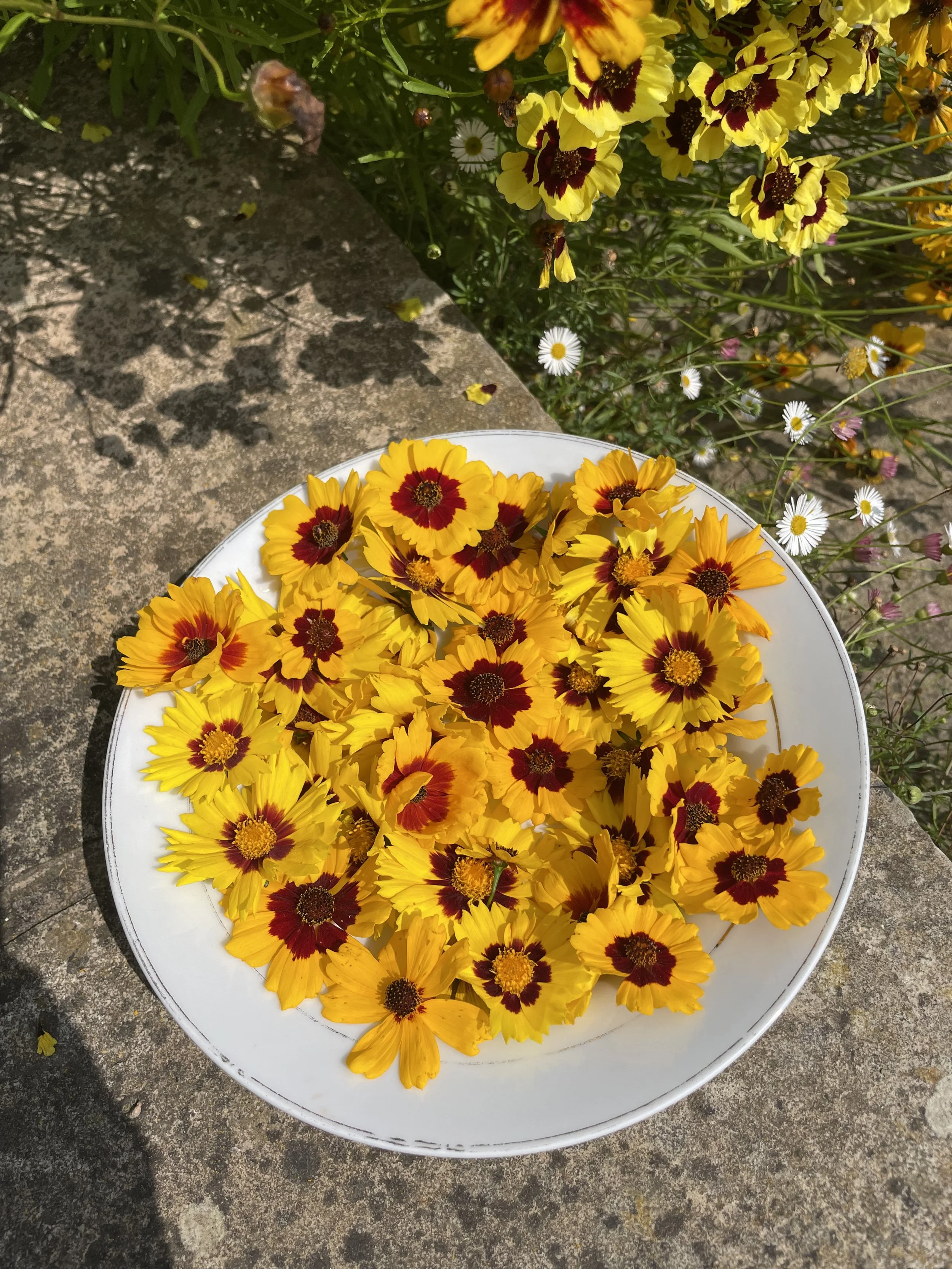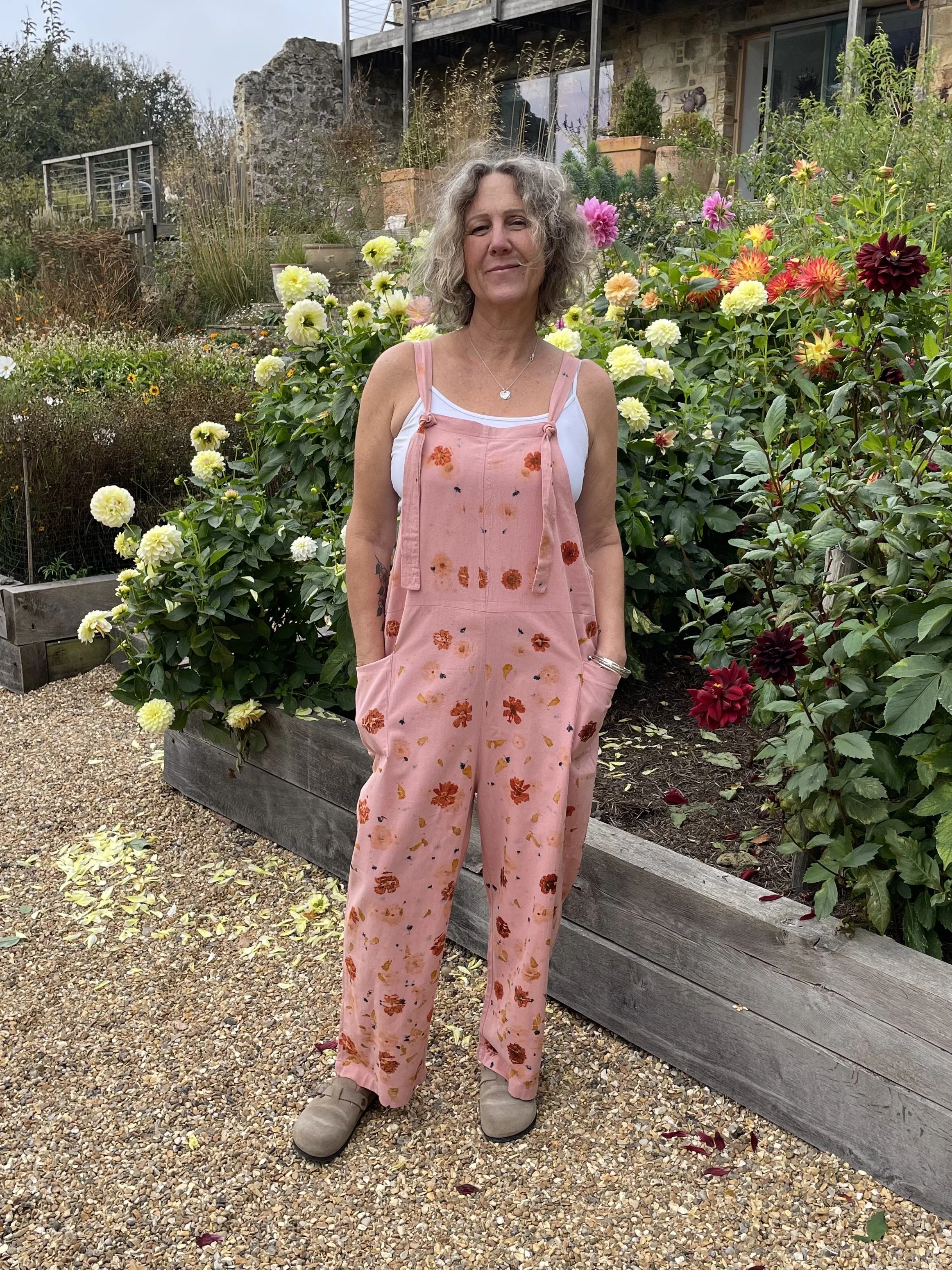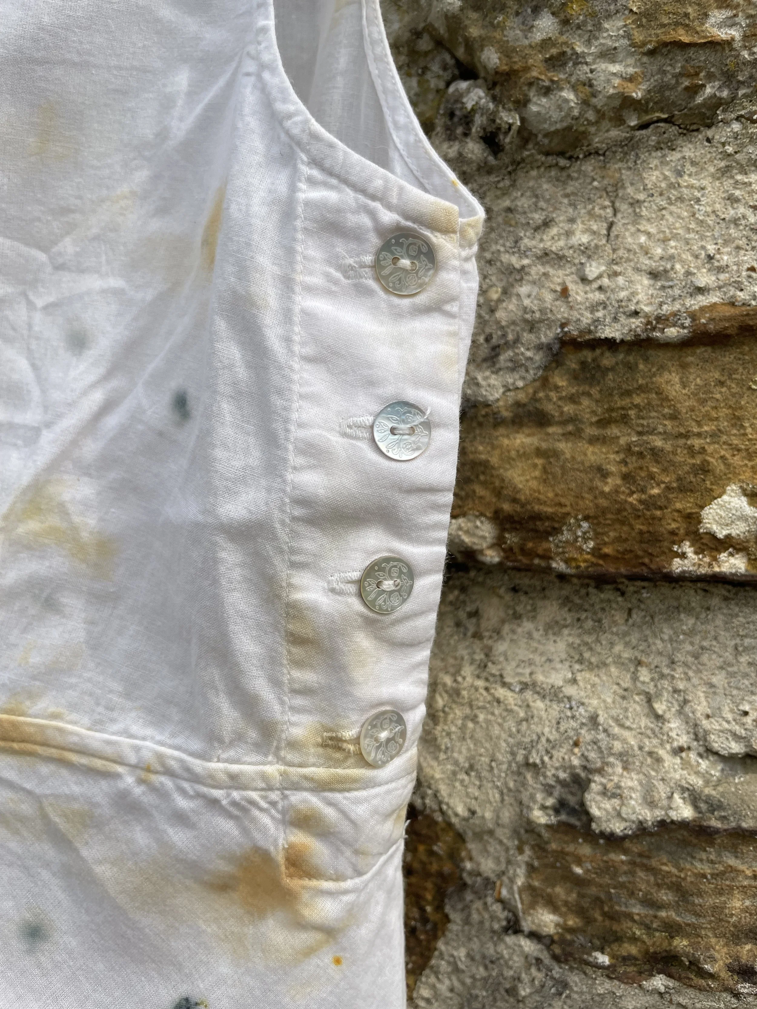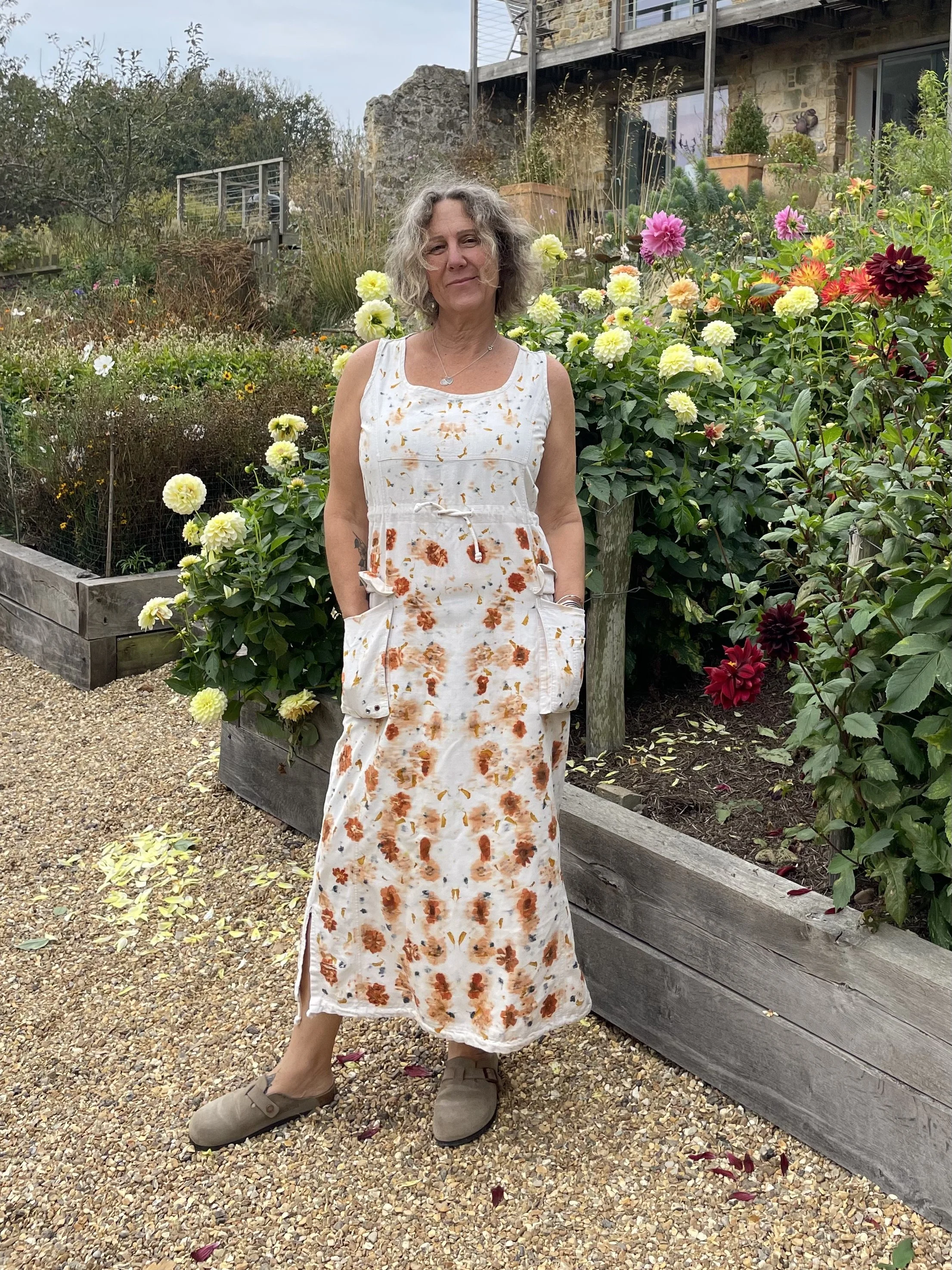 This 100% cotton T shirt has been given a new lease of life with flowers! It has been eco printed with just simple Coreopsis flowers, from my dye garden here in Fairlight by the sea.